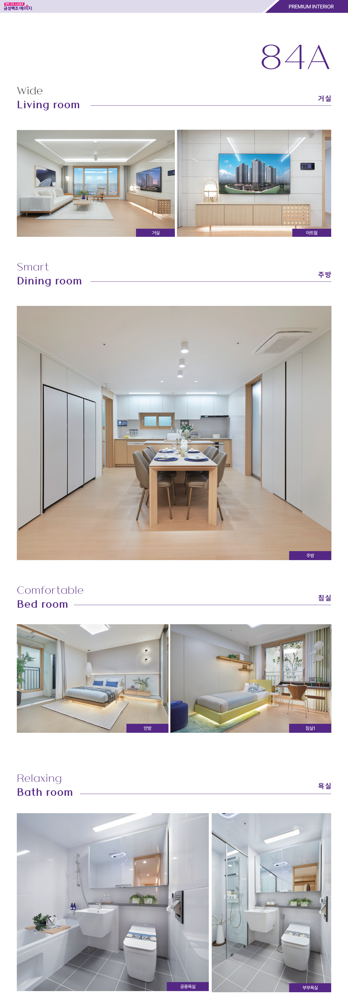 84A는 4베이 판상형에 맞통풍 구조, 거실·주방의 직관적인 동선이 강점입니다. 현관 창고와 주방 팬트리, 알파룸이 더해져 방 4개 활용이 가능하고, 드레스룸은 컴팩트하지만 수납 동선을 짜임새 있게 구성했습니다. 84B 역시 4베이에 알파룸을 포함한 방 4개 구성이 핵심입니다. 두 타입 모두 가족 구성 변화에 유연하며, 평택 고덕 금성백조 예미지는 같은 면적이라도 체감 공간을 넓히는 수납 특화가 돋보입니다.